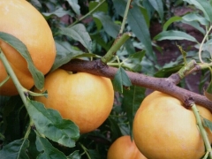 瑞光28号桃苗结出的果实极大,平均单果重260克,最大果重650克。瑞光28号桃苗结的果实呈近圆-短椭圆形,果顶圆,缝合线浅,梗洼中等深度行业宽度,并且在成长过程中果皮套袋全黄色。果皮厚,不能剥离。果肉黄色,近核处果肉同肉色,无红色素。肉质为硬溶质,多汁,风味较甜。果核浅褐色,椭圆形,粘核。七月下旬果实成熟。这种苗的果实发育期101天左右。瑞光28号桃苗结出的果属特大型果,上市期正值市场断档期。这种苗木适合发展种植。(瑞光28号桃苗属中熟品种)来源:http://www.qdfyjmm.com
